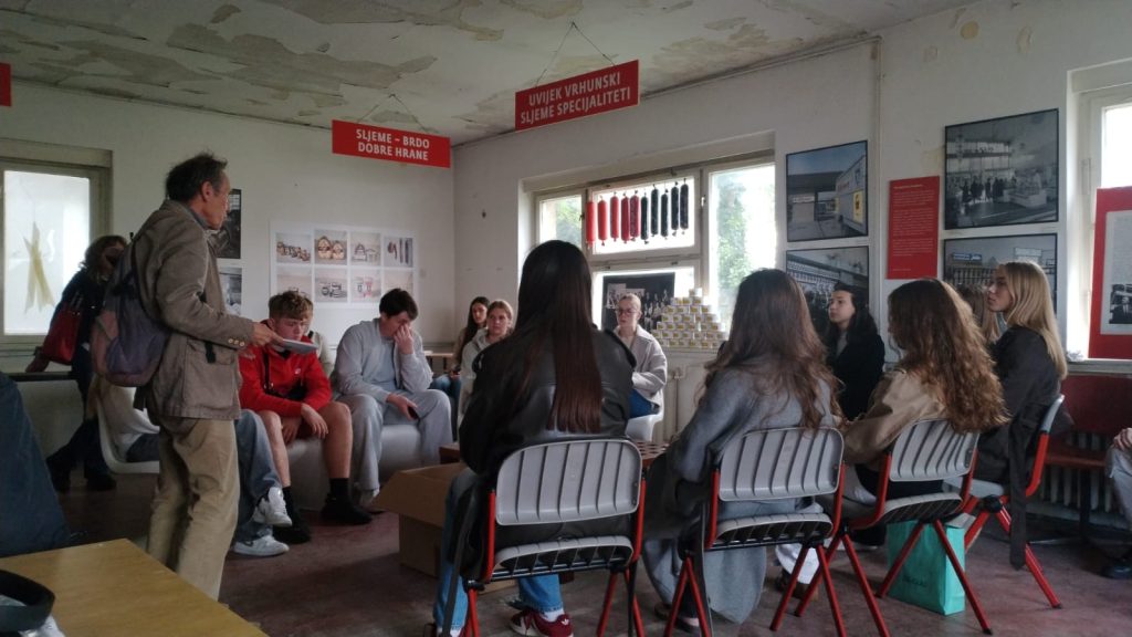 Nakon toga, članice OLP-a su se opustile u kratki obilazak zgrade. Nekadašnja Tvornica Sljeme, iako u derutnom stanju, toga je dana osim tribina i susreta bila ispunjena likovnim intervencijama, nastalim u suradnji sa Školom primjelnjene umjetnosti i dizajna te Rotary klub Zagreb Sesvete (izložba pod nazivom Glazbeni Paviljon) kao i sa slijedećim umjetnicima i umjetnicama okupljenim na izložbi Sljeme za sve 2.0: Adrijana Brčić, Paulina Marija Vukoja, Marija Palikuča, Lea Bulaja, Paula Palikuča, Iva Kozačinski, Matea Čolak, Roko Jurić. Na posljetku, svjedočili smo zanimljivom vodstvu kustosa Muzeja Prigorja, koji je srednjoškolce proveo zgradom Tvornice te ih upoznao s njezinom poviješću. Ovo vodstvo izvedeno kao dio prije spomenutog projekta pod palicom Odsjeka za etnologiju.